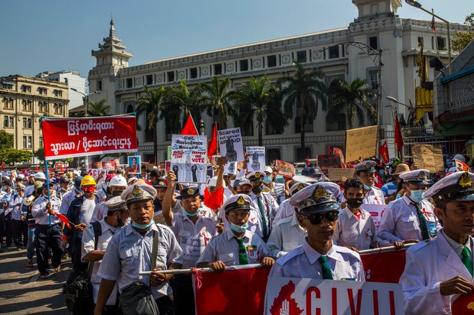 As the Myanmar military deploys troops in an (unsuccessful) effort to deter protests, it encounters the growing problem of people who stay home from work in protest, including some three quarters of civil servants who won't "work under a dictatorship.”