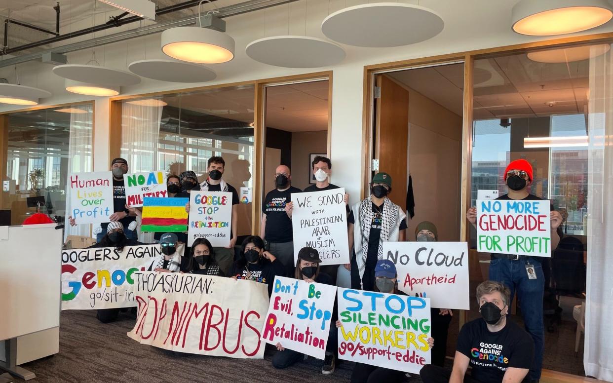 On Tuesday, dozens of staff wearing T-shirts saying “Googler against genocide” unfurled banners and posed inside the office of Thomas Kurian, the head of Google’s cloud computing division.